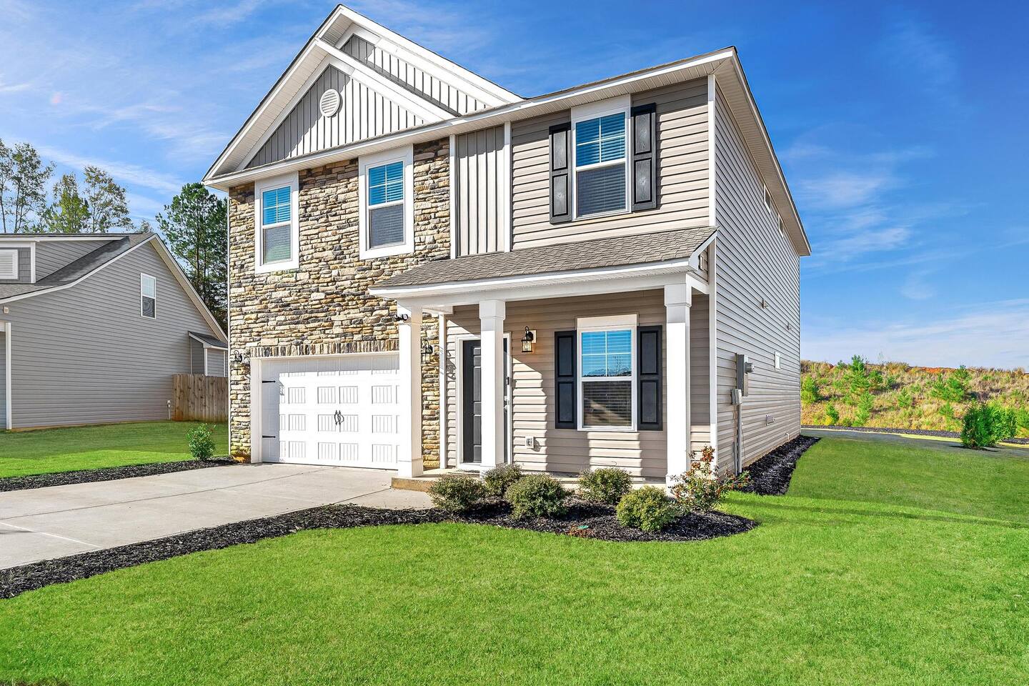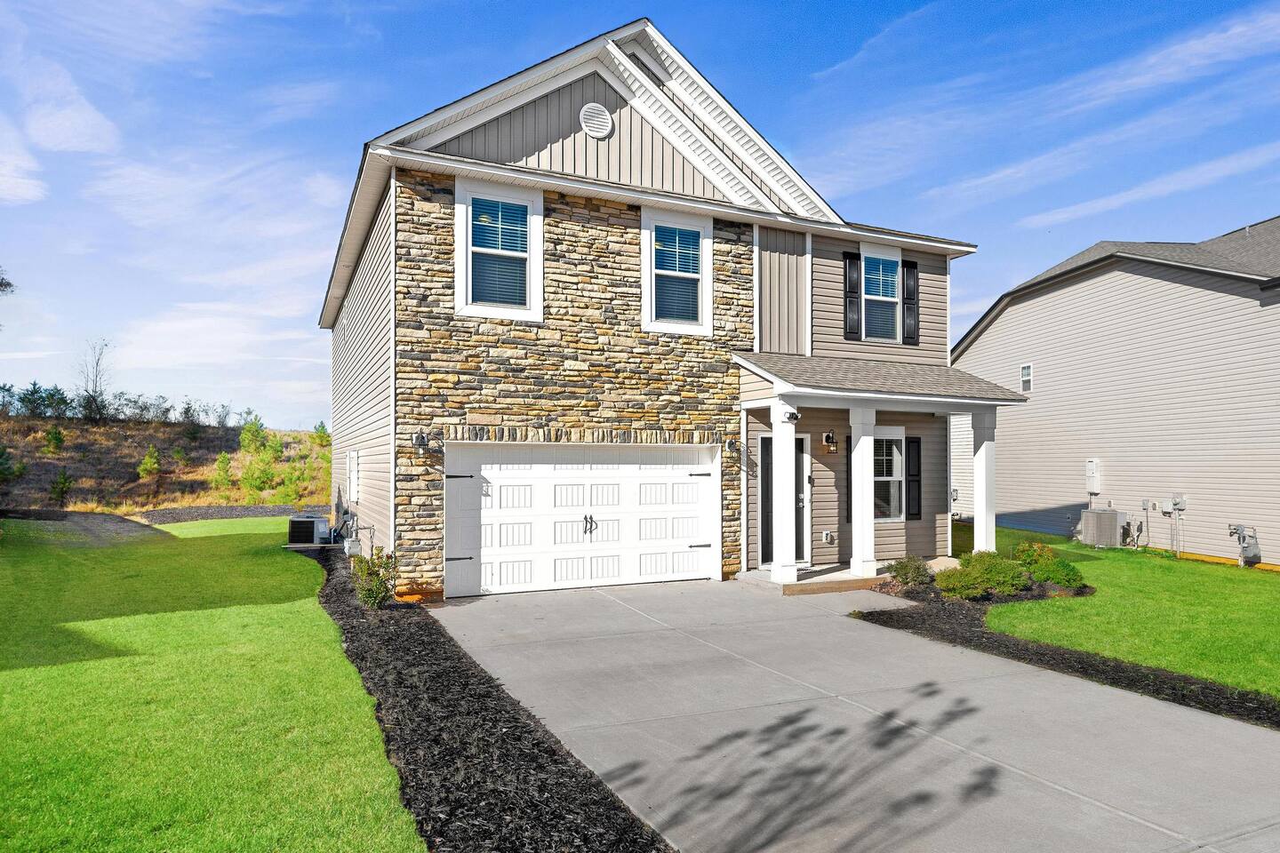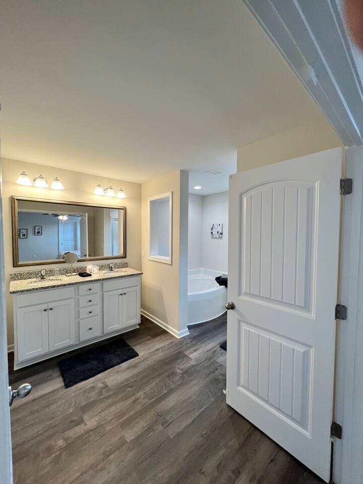 Brand new 2200 Sq Ft home in a new community with 4 bedroom and 3 full baths. Large master bedroom with shower & tub, 2 bedroom with queen beds and 4th bedroom with 2 twin xl beds. Smart TV with YouTube & Netflix included. private backyard, BBQ Grill and all new furnishing, kitchen utensils. blue tooth sound system on the main floor. Fully equipped home.