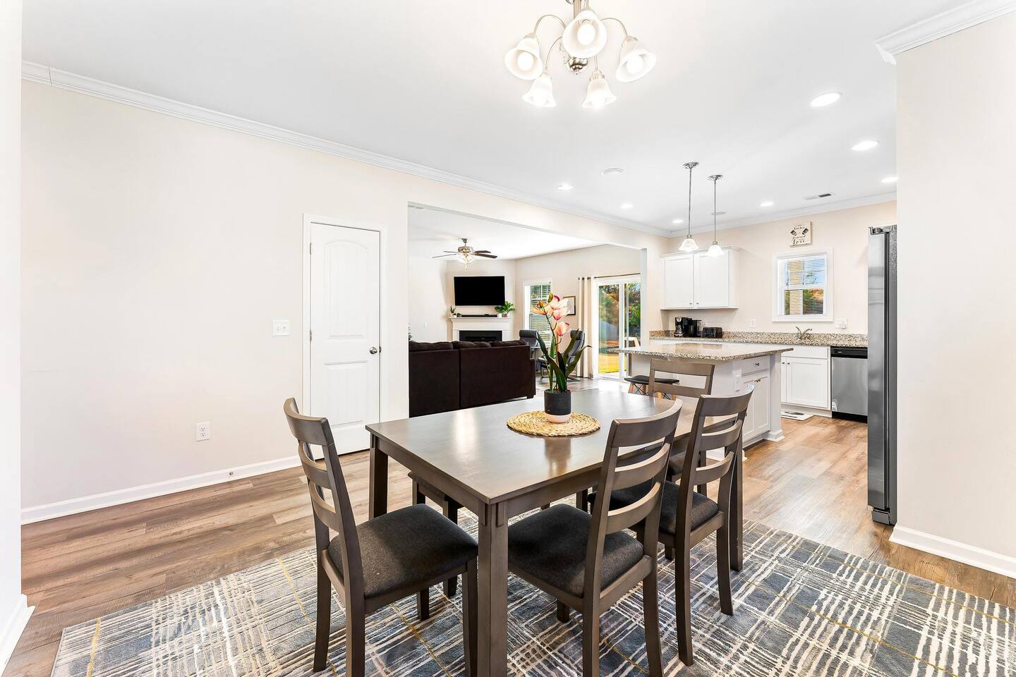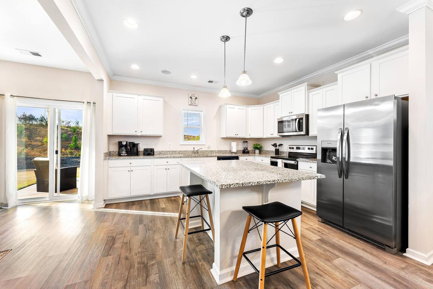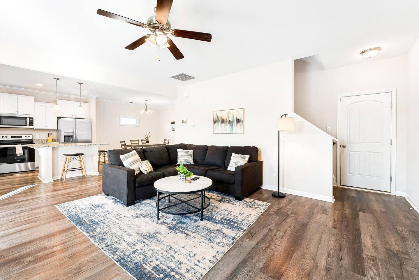 Brand new 2200 Sq Ft home in a new community with 4 bedroom and 3 full baths. Large master bedroom with shower & tub, 2 bedroom with queen beds and 4th bedroom with 2 twin xl beds. Smart TV with YouTube & Netflix included. private backyard, BBQ Grill and all new furnishing, kitchen utensils. blue tooth sound system on the main floor. Fully equipped home.